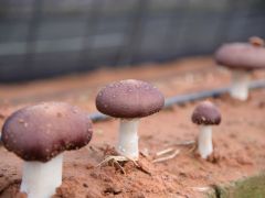 若出菇期遇大风或高温天气,易造成料面干燥,应及时对料面进行喷雾补水。