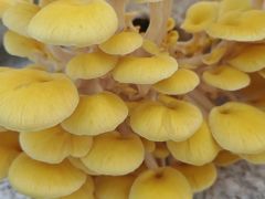 覆土后保持土壤湿润,适量通风,温度控制在18-25℃,一般经10天左右,菌丝即可长满土层表面。此时根据天气情况,经常喷雾化水,通风数次,保持空气相对湿度在85%-90%,覆土20天左右,床面开始形成白色粒状菇蕾。管理上以控温、增湿。通风为主,并给予适当光照,刺激出菇。各种条件适宜情况下,菌丝体扭结至形成菇蕾一般需5-6天,菇蕾破土需3-4天,子实体成熟7-10天。