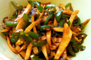 - 青椒素炒杏鲍菇