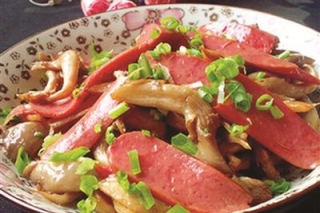- 火腿炒蘑菇