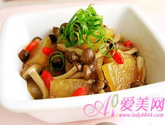 竹荪是种名贵的菌类,超市可以买到,它营养丰富,味道鲜美,质地脆嫩,香气浓郁,长期食用能调整人体血脂及脂肪酸,有活血、养颜等功效;竹荪还有“刮油”的作用,能减少腹壁脂肪的贮积。