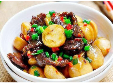 - 草菇的鲜美搭配牛排的柔嫩,这是一道十分温养的菜