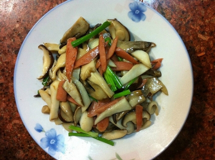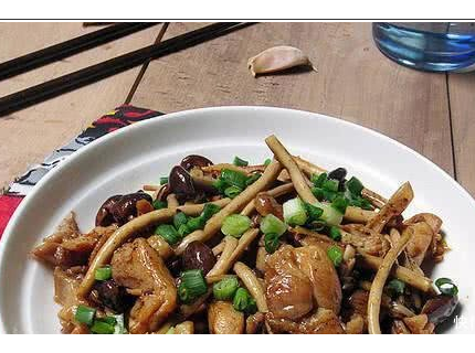 - 茶树菇炒鸡肉,味道特别鲜美