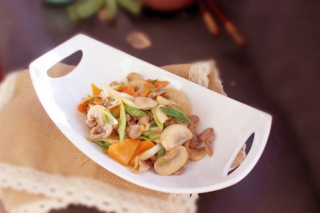 - 鸡胗炒口蘑