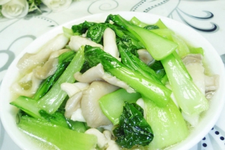 - 青菜炒秀珍菇