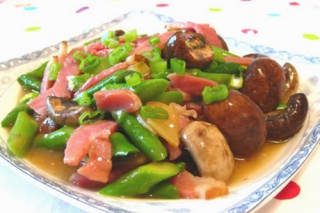 - 火腿烩芦笋蘑菇
