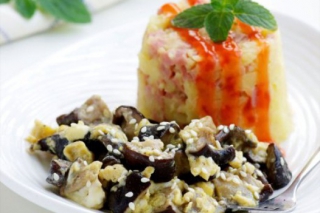 - 蘑菇烘蛋配奶香火腿土豆泥