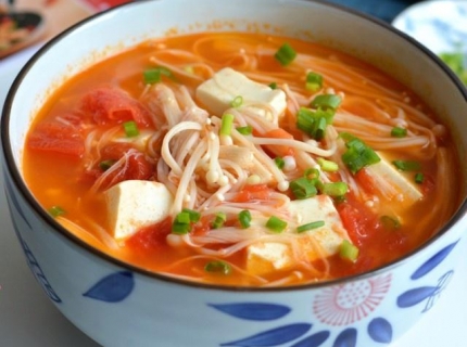 - 每天喝一碗金针菇番茄豆腐汤,暖胃又漂亮