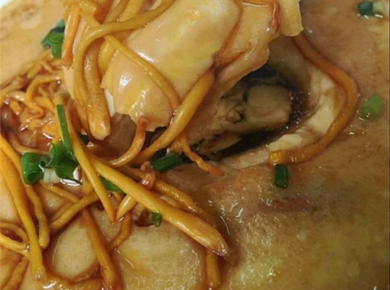 7、取出虫草花鸡块,洒入香菜末,即可上桌。