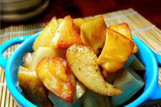2、如果家里没有烤箱,也可以用平底锅做这道菜,将杏鲍菇煎黄后,撒盐,撒黑胡椒粉即可。
