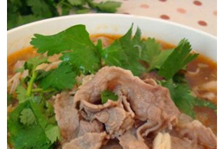6. 锅中留有煮好的酸辣汤,放入肥牛片煮至变色,即可捞出;(千万别煮久了,肉就老了哈)