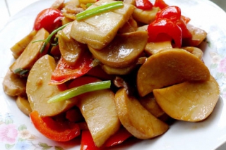 主料:杏鲍菇。辅料:生抽、蚝油、老抽、盐、白糖、橄榄油。制作步骤:1、杏鲍菇洗净,切5—6厘米的段儿,再纵向直刀切0.6厘米厚的片儿,把每片杏鲍菇剞十字花刀;2、将生抽、老抽、蚝油、盐、白糖和适量的水混合,制成调料汁;3、将杏鲍菇片儿放入调料汁中,腌15分钟;4、炒锅置于火上,放入适量橄榄油,六成热时,放入腌好的杏鲍菇片,用中小火稍微煎一下;5、待杏鲍菇出水后倒入刚才腌杏鲍菇的调料汁,大火收汁即可装盘。