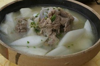 3、水沸后下入香菇与白萝卜块,大火煮沸后转中火再煮一刻钟,根据口味喜好加入少量食盐与香油调味,关火盛出后撒少量葱花即可食用。