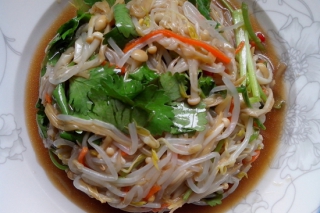 3、把香菜、盐、味精、醋、白糖、生抽少许、藤椒油、放在菜上。