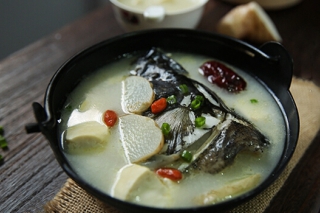 食材:胖头鱼头1个、豆腐2块、新鲜天麻半个、红枣2个、枸杞1小把