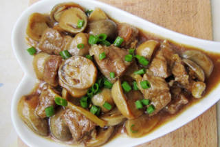 主料:牛肉250克 草菇280克