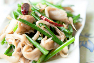 7.新鲜的白玉菇,剪去根部洗净待用。