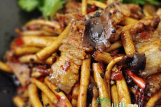 茶树菇炒肉片爽滑可口,味道鲜美。由于茶树菇本身就很鲜美,因此本菜不需要加味精,更加营养健康。茶树菇,集高蛋白、低脂肪、低糖份、保健食疗于一身的纯天然无公害保健食用菌。
