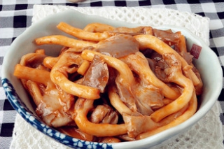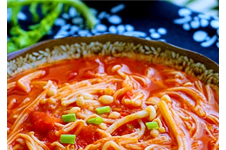 4、锅里放水,水开后把海鲜菇焯一下,捞出备用。 5、一瓣蒜头切成蒜末,去了皮的西红柿切成小丁。 6、锅里放油,放入蒜末爆香。 7、倒入西红柿丁翻炒,炒出番茄酱的感觉,加入一点番茄沙司味道更好。 8、放入海鲜菇翻炒,加入一勺白糖,然后加一点盐。 9、盛出装盘,最后撒点小葱花点缀即可