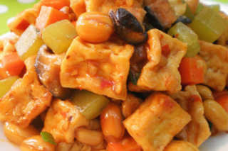 -- 用料 -- 杏鲍菇 三个 花生米 干红辣椒 葱 姜 蒜 白糖 醋 老抽 香油 鸡精 水淀粉 盐 青椒 -- 做法 -- ❶ 杏鲍菇洗净切小丁,花生米准备好。 ❷ 青椒切小块,辣椒切小段,葱姜蒜切碎。 ❸ 老抽、白糖、醋、鸡精、水淀粉和盐调成汁备用。 ❹ 炒锅中放多些油,将杏鲍菇过油后倒出。 ❺ 炒锅中放少许油,放入干红辣椒变色后,放葱姜蒜爆香。 ❻ 放入杏鲍菇丁翻炒。 ❼ 转小火,淋入调好的汁,快速翻炒。 ❽ 加花生米、青椒块翻炒几下,淋少许香油即可。 -- 小贴士 -- 花生用超市买的麻辣花生就很不错。