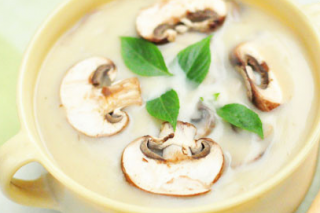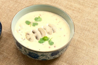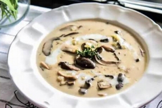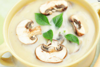 7待蘑菇面酱汤开锅后,加入100克奶油