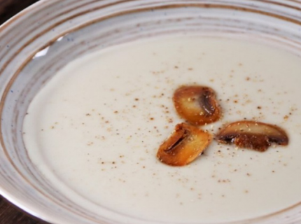 蘑菇, 洋葱碎, 黄油, 面粉, 盐, 白胡椒粉, 淡奶油 一小碗