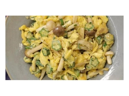 5、大火收汁倒入之前装好盘的秋葵上,撒些葱花即可