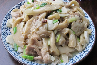 平菇炒肉这道菜的最大亮点就是肉的口感与平菇的嫩滑相结合,形成了一种特别的口感层次。首先,前腿肉的选择至关重要。前腿肉脂肪与瘦肉比例适中,经过精心的腌制后,肉质会变得更鲜嫩,而肥肉部分的香气,也能为整道菜增加不少的润滑感。
