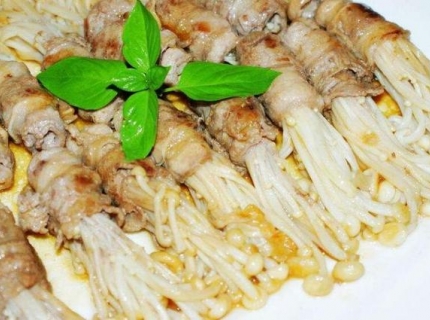 金针菇撕成小束,粗细跟肥牛宽度差不多。记住:太粗卷不住,太细没口感。卷之前用厨房纸吸干水分,防溅油。
