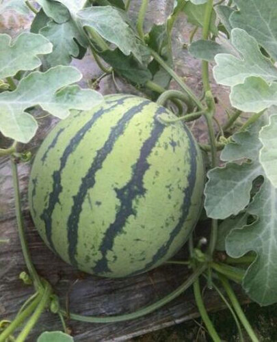 四、美都西瓜苗:中熟杂交种。常温下开花至果实成熟约40天,一般单瓜重5千克以上。
