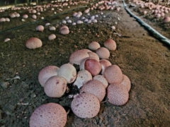 “我们将这些环保无污染的原材料打碎、包装制作成中空的圆柱形菌包,经过高温灭菌后,再将实验室培育的菌种灌到菌包的中心。”工厂工作人员严庭发说,后续将这些菌包埋进刨好的土坑中,菌种“吃”了菌包中的养料,无须添加肥料就能茁壮生长。