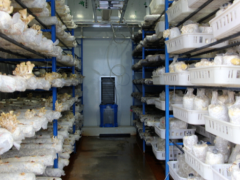 “黄金菇很‘娇贵’,对生长环境要求非常苛刻。不同阶段需要精准调控。比如菌丝萌发期,棚内温度需维持在22℃至26℃,湿度控制在60%-70%之间,稍有偏差就可能影响菌丝生长,甚至造成污染。”宁勇志一边介绍,一边指着棚内的恒温控制和物化设备。