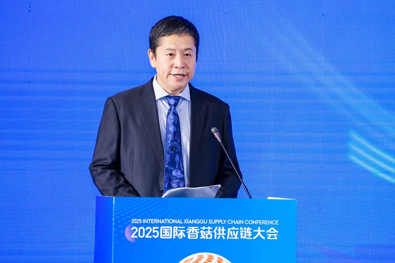 中国工程院院士、全国脱贫攻坚楷模、国际药用菌学会主席、吉林农业大学学术委员会主任李玉教授在致辞中回顾了中国食用菌学科的发展历程,并围绕“以菇为媒,连接世界”的大会主题,就推动香菇产业高质量发展提出五点关键路径:一是转变发展思维,从“为产品找客户”转向“为客户造产品”,强化消费导向;二是拓展产业边界,融入大食品生态,开发即烹食品、菌菇蛋白等创新产品;三是深化全球布局,推动从单一产品输出向菌种、装备、技术、标准全链条出海转变;四是强化科技赋能,运用AI、大数据等培育新质生产力,实现从“种蘑菇”向“种科技”跨越;五是厚植文化底蕴,挖掘香菇背后的农耕文明内涵,提升品牌价值。他呼吁各方以此次大会为契机,推动科技创新与产业创新深度融合,共同助力中国香菇产业驶向更高质量、更具全球影响力的新航程。