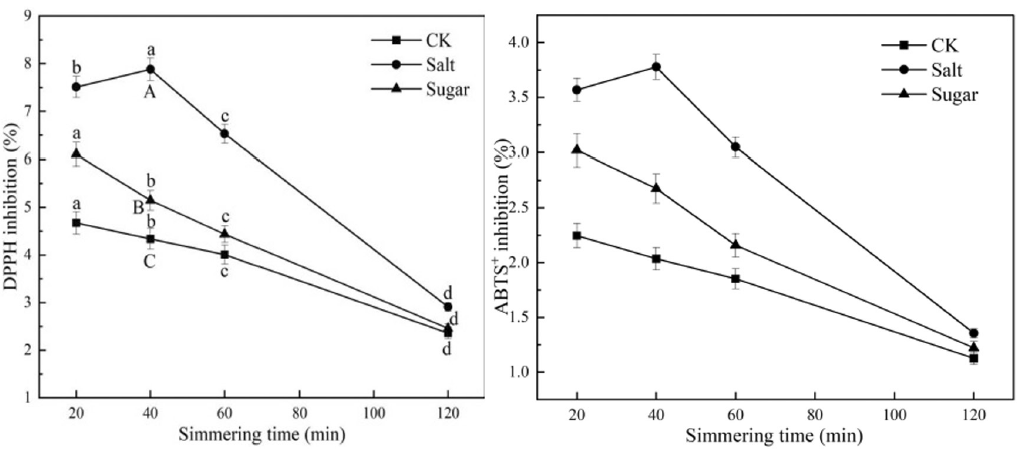 除了风味,羊肚菌汤的营养价值也与炖煮方式紧密相关。在40分钟时,汤中总糖和有机酸含量最高,后者具有较强的抗氧化能力。研究发现,加盐炖煮的汤样抗氧化活性最强,可能与盐促进多酚类物质溶出有关。这意味着适量加盐不仅能提味,还有助于保留汤中的抗氧化成分。