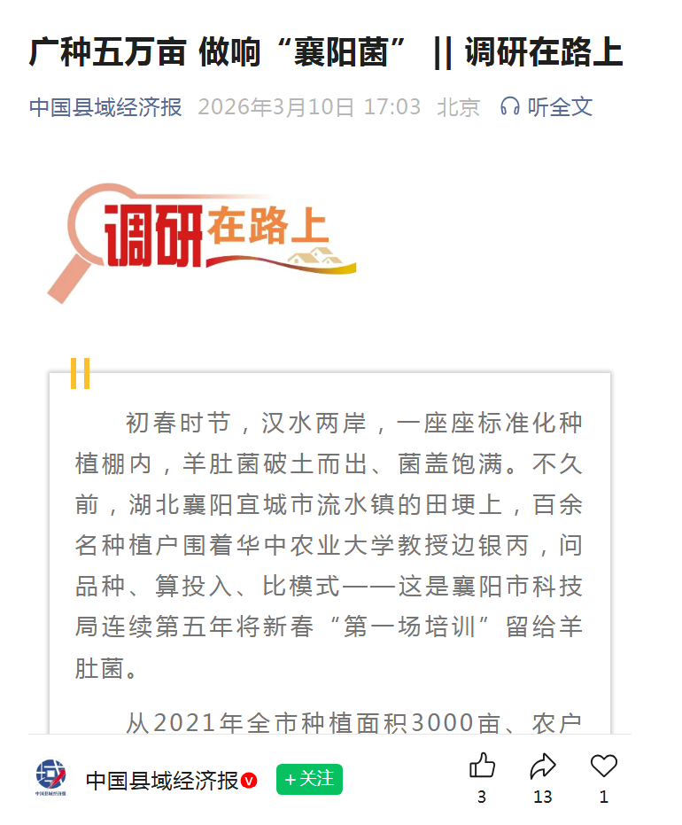 《中国县域经济报》认为,从3000亩到5万亩,襄阳依靠科技支撑走出一条县域特色产业的突围之路。