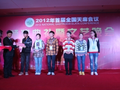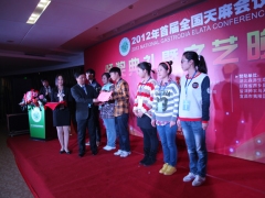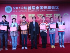 12日晚,全国天麻会议颁奖典礼暨文艺晚会邀请了三峡电视台知名节目主持人王姿领衔主持。颁奖典礼中,先后颁授了“2012年首届全国天麻会议”突出贡献奖、“2012年首届全国天麻会议”指定产品、全国天麻生产先进工作者、全国天麻生产先进单位、全国天麻生产先进县(基地),其中,还特别颁授原中国医学科学院药用植物研究所徐锦堂教授、原中国科学院昆明植物研究所周铉教授为“中国天麻研究终生成就奖”,宜昌三峡旅游职业技术学院王绍柏教授为“全国天麻产业发展突出贡献奖”,对这些在我国天麻科研和生产中作出卓越贡献的专家予以表彰。