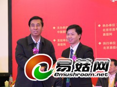 北京市昌平区科学技术委员会主任李万佰为易菇网总裁张升明颁发中国天麻产业联盟监事长证书