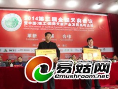 2014第三届全国天麻会议暨中国(德江)国际天麻产业发展高峰论坛11月9日至11日在德江举行,来自国内外500多名专家和代表齐聚德江,共享德江天麻科学发展新成果。德江县获得了“全国天麻生产先进基地”和沙溪、高山两乡镇获得“全国天麻生产先进乡镇”等称号,对部分单位和个人进行了奖励,同时授予德江 “全国天麻之乡”牌匾等荣誉。